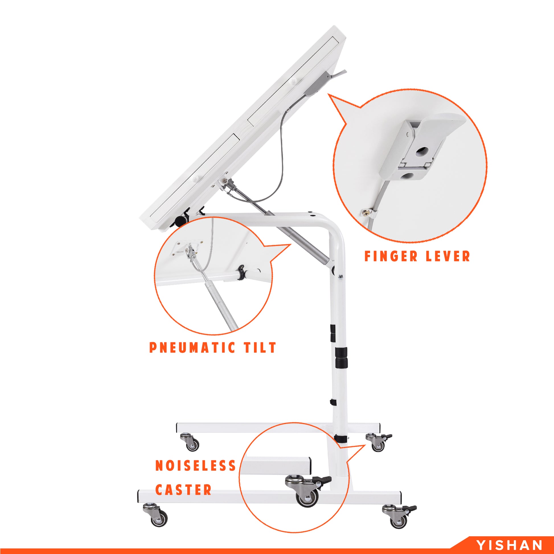 Purchased for mom and she hasn't seen it yet but I know she will love it. What I love: it's sturdy, the many drawers, that it rolls up to her chair easily, it can be tilted or lay flat and it's height adjustable.