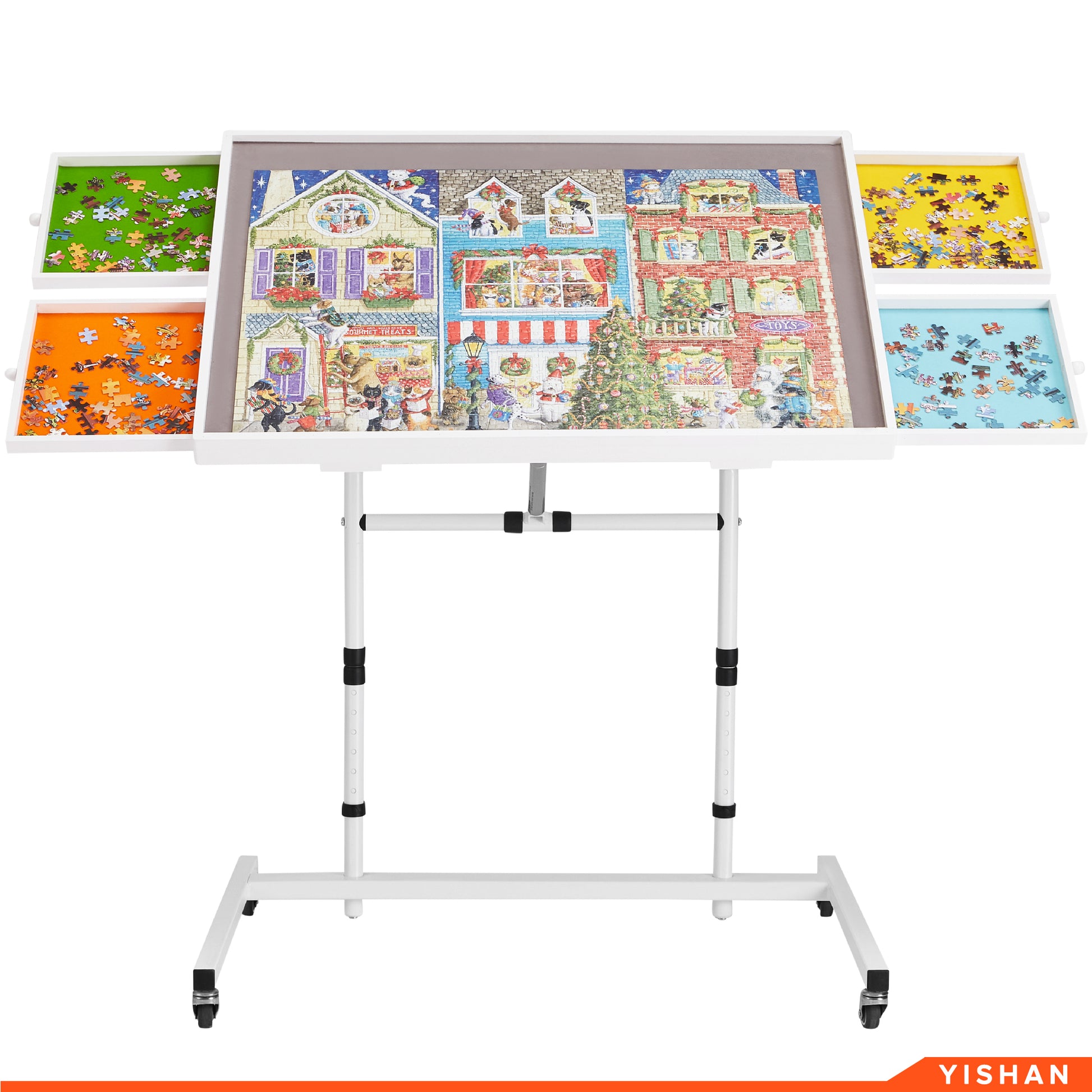 Tilted Jigsaw Puzzle Rolling Table with Drawers and Cover